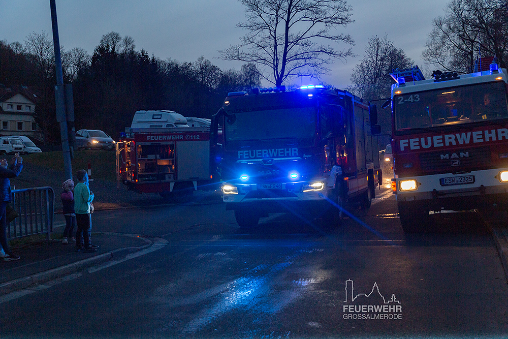 Die Ankunft war dann am Montagabend und das neue Fahrzeug wurde im Konvoi ab dem Pfaffenberg mit Fahrzeugen aus anderen Standorten zum Feuerwehrgerätehaus geleitet, allen voran das bald ausscheidende Tanklöschfahrzeug.